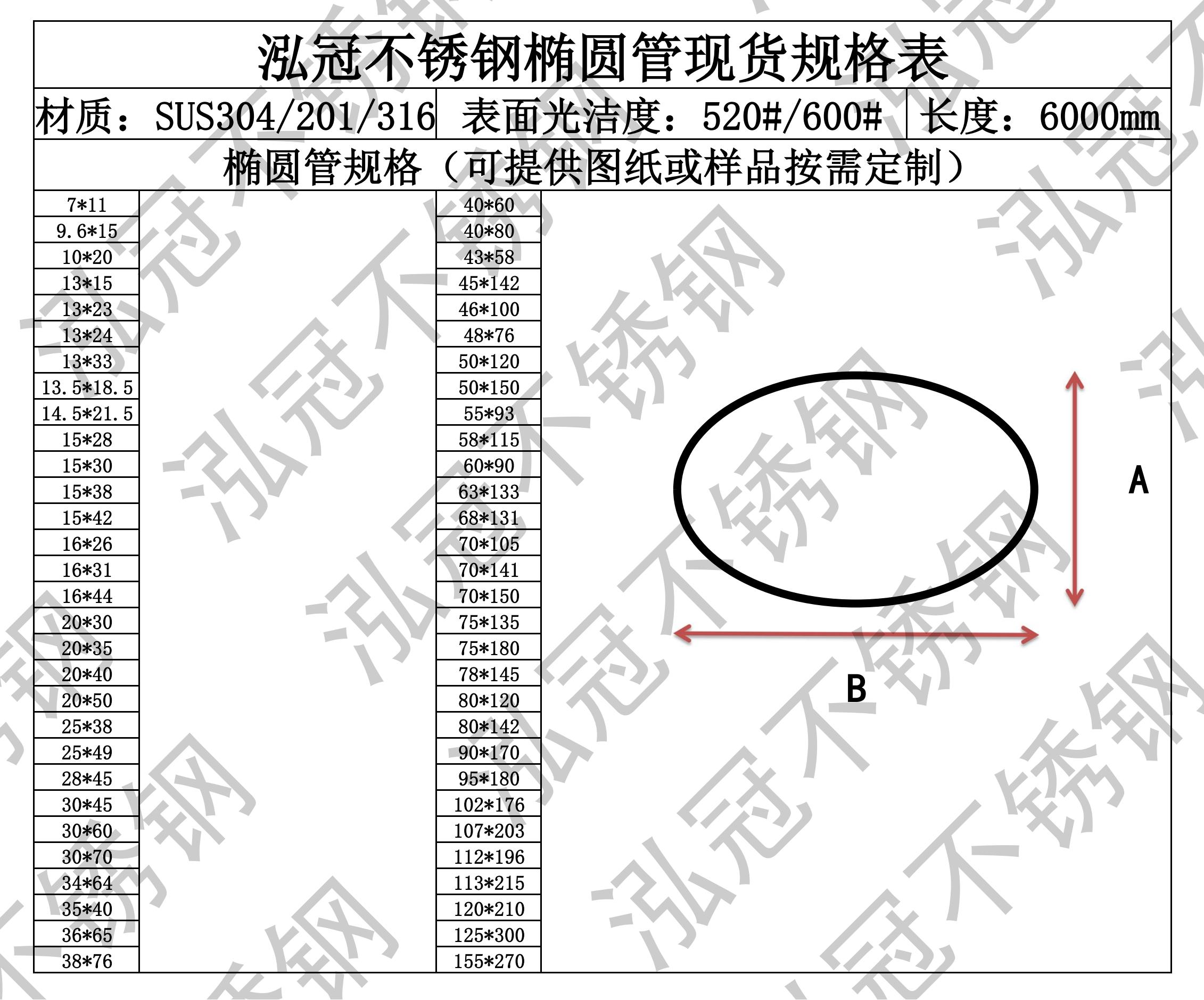 泓冠不銹鋼橢圓管現貨規格表